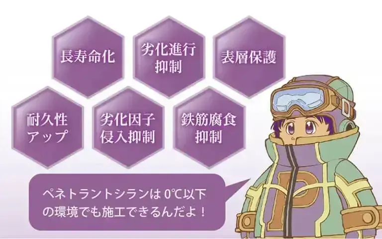 また、金属・コンクリート両方に対応しており、建造物の長寿命化、補修時のコスト抑制が実現できます。