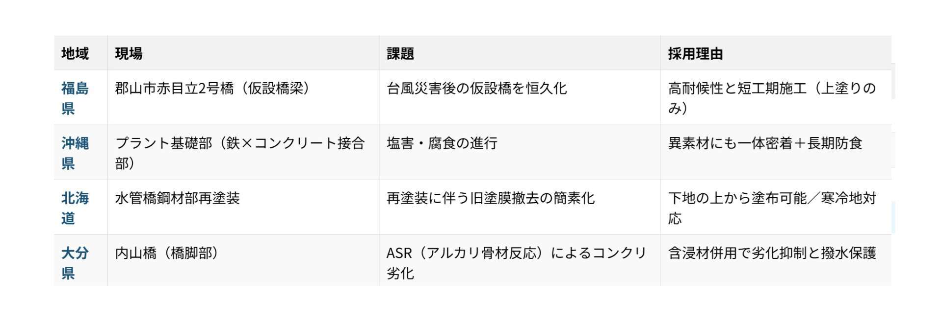 ✅ 「塗り替え時期を5年以上延ばせた」との報告もあり、寒冷地のライフライン維持に貢献しています。